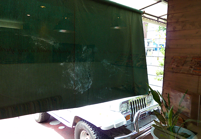 緑の日除けんとこ、よ〜く見ると..こりゃ真正面からいってますね
